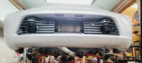 The setup begins with a 3" V-band connection and includes a matching flange and clamp, allowing easy attachment to your existing header or mid-pipe. You can choose between dual 2.5" grill exits or dual under-bumper outlets, depending on your preferred look and sound profile.